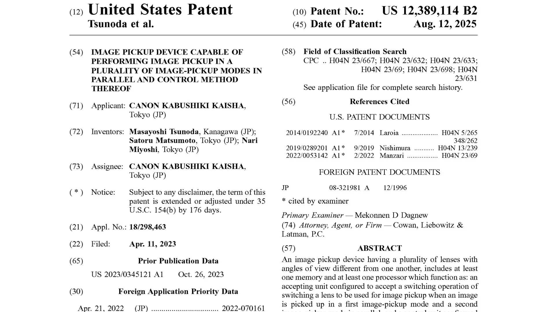 Canon’s new filing is titled “Image Pickup Device Capable of Performing Image Pickup in a Plurality of Image-Pickup Modes in Parallel and Control Method Thereof”.