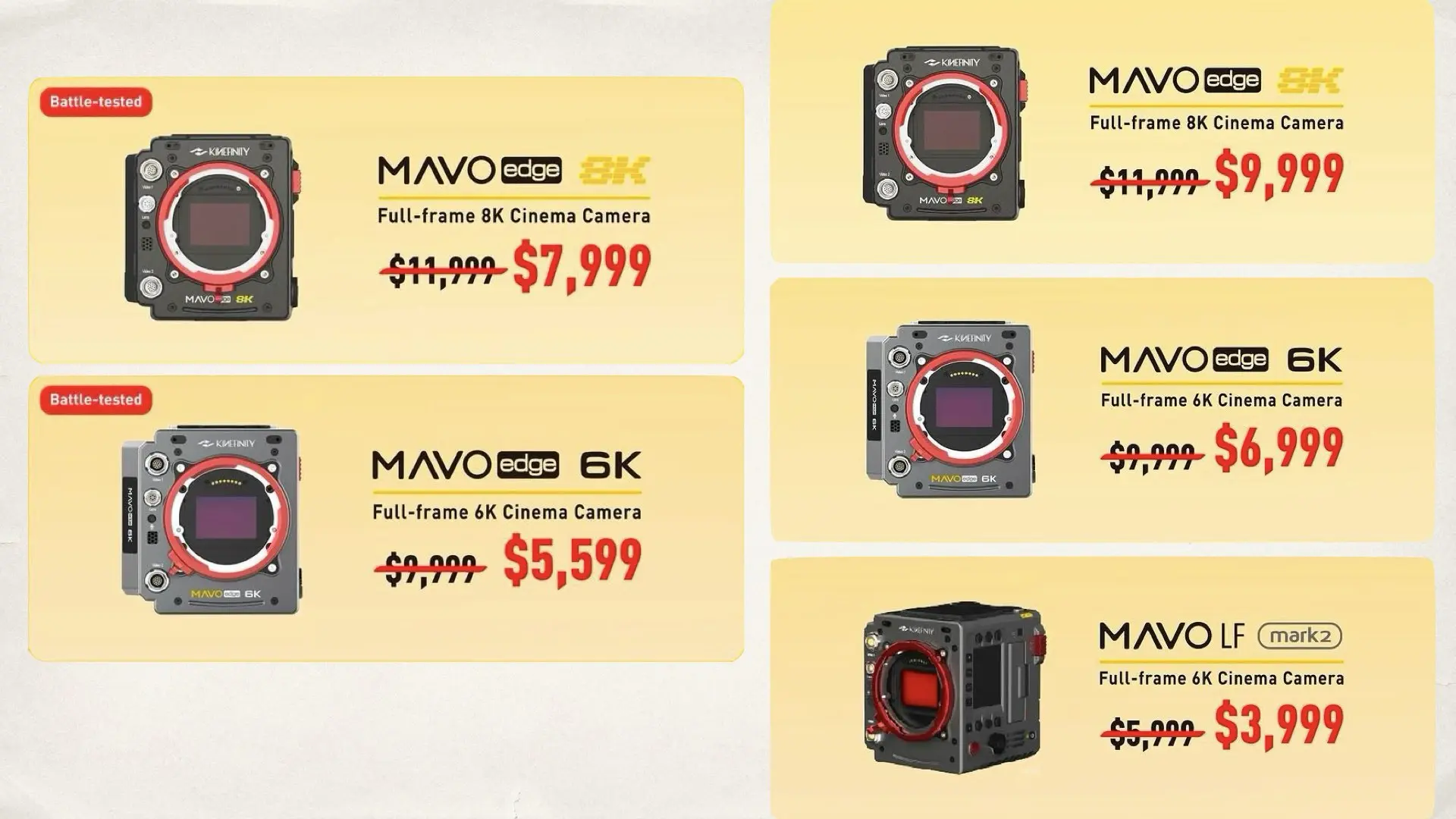 Kinefinity’s battle-tested lineup includes units previously used for demos, expos, and internal testing. After recalibration and full inspection, they offer identical performance to new cameras at substantially lower prices. You can now pick up a battle-tested MAVO Edge 8K for $7,999 or a MAVO Edge 6K for $5,599. For filmmakers seeking reliability and cinematic image quality on a budget, these deals are unmatched. Earlier, Huge Price Drop on Kinefinity MAVO Edge Cinema Camera showed how competitive Kinefinity had already become; this sale pushes that value even further.