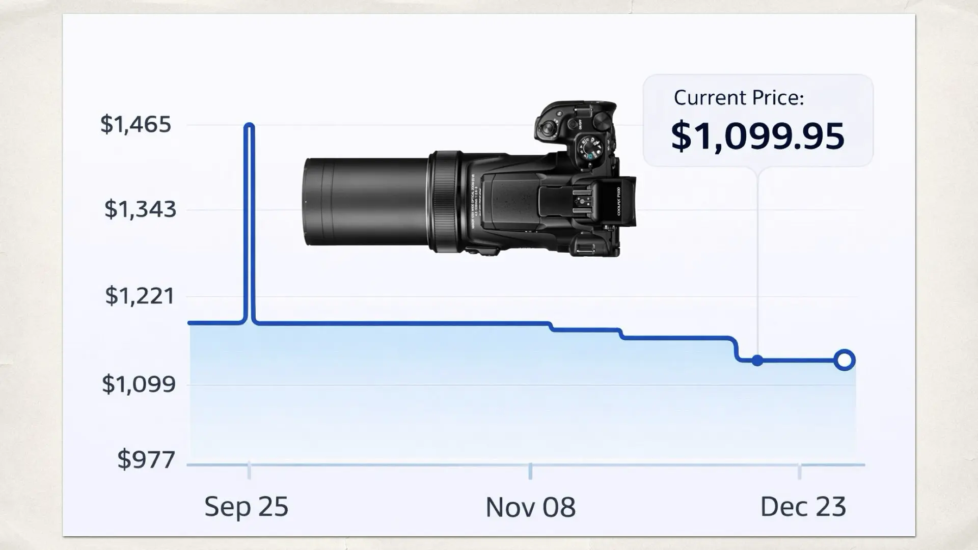 Over the past 30 days, the price of the Nikon COOLPIX P1100 has ranged between $1,129.95 and $1,099.95. The current price of $1,099.95 matches the 30 day low and represents a $30 savings from the recent higher point. This is the lowest recorded price for this camera so far. Does that make it a better deal. Financially, yes. Conceptually, not necessarily. A lower price does not change the sensor size, autofocus behavior, or video limitations. It simply lowers the barrier for users who were already considering this type of camera.