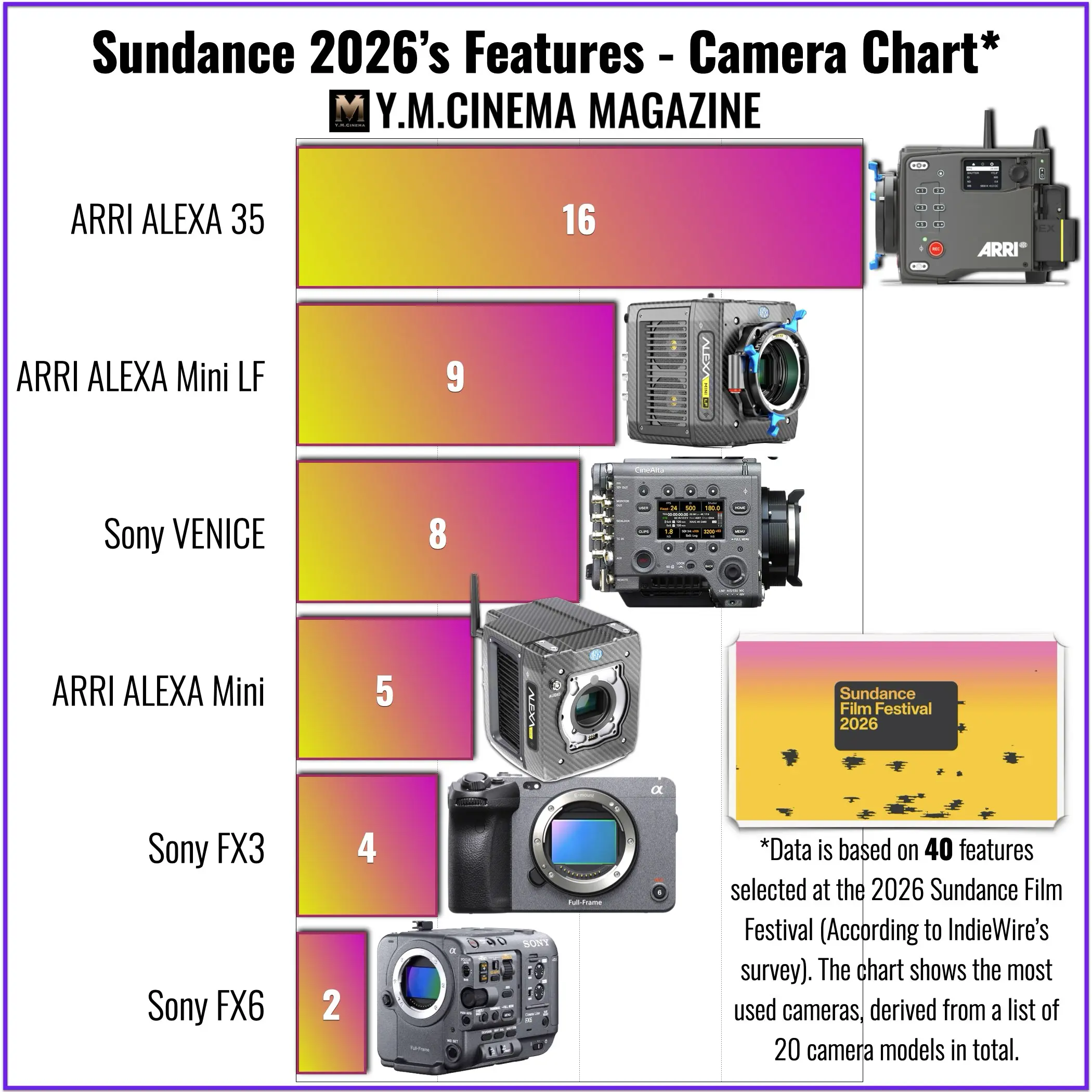 This article is based on the 2026 Sundance Features Cameras Survey published by IndieWire as part of its How I Shot That series. The survey provides rare, first-hand insight from directors of photography on the cameras and lenses used across this year’s Sundance feature slate. We would like to thank the IndieWire editorial team and the participating filmmakers for compiling and sharing such detailed technical data. Surveys like this are an invaluable resource for cinematographers, filmmakers, and industry professionals, offering a grounded look at real-world production choices rather than marketing narratives. YMCinema’s analysis and breakdown are derived directly from this publicly available survey, with additional aggregation and trend interpretation for educational and editorial purposes.