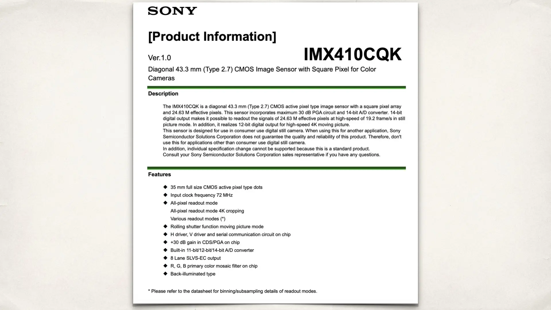 Inside many of today’s most respected cameras sits the same piece of silicon. Different brands. Different color science. Different ergonomics. Yet under the hood, a surprising number of them rely on one sensor designed by Sony Semiconductor. The sensor is the Sony IMX410. Introduced around 2018, this 24.6 megapixel full-frame backside illuminated CMOS sensor quickly became one of the most widely adopted imaging chips in the modern camera industry. Over time, it found its way into cameras produced by Sony, Nikon, Panasonic, Leica, Blackmagic Design, and DJI. Cameras that appear completely unrelated in design and philosophy often begin with the exact same piece of hardware.