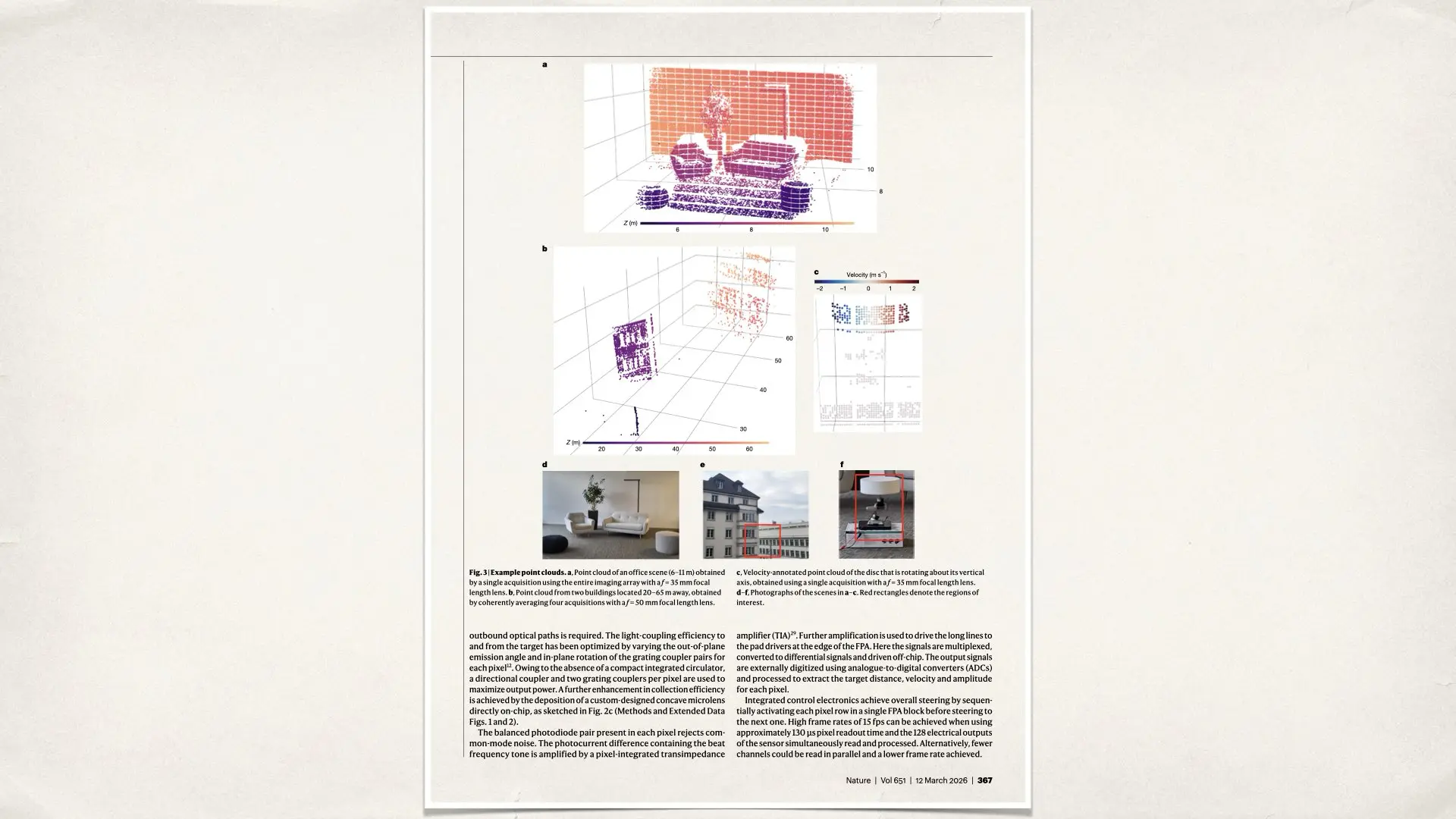 In demonstrations, the sensor was able to map scenes between about 4 meters and 65 meters away. The system generates detailed point clouds that reveal the structure of buildings, objects, and moving elements in the environment. The technology can even measure the velocity of moving objects with millimeter-level precision. This ability to capture both geometry and motion is what makes the sensor fundamentally different from traditional depth sensors.